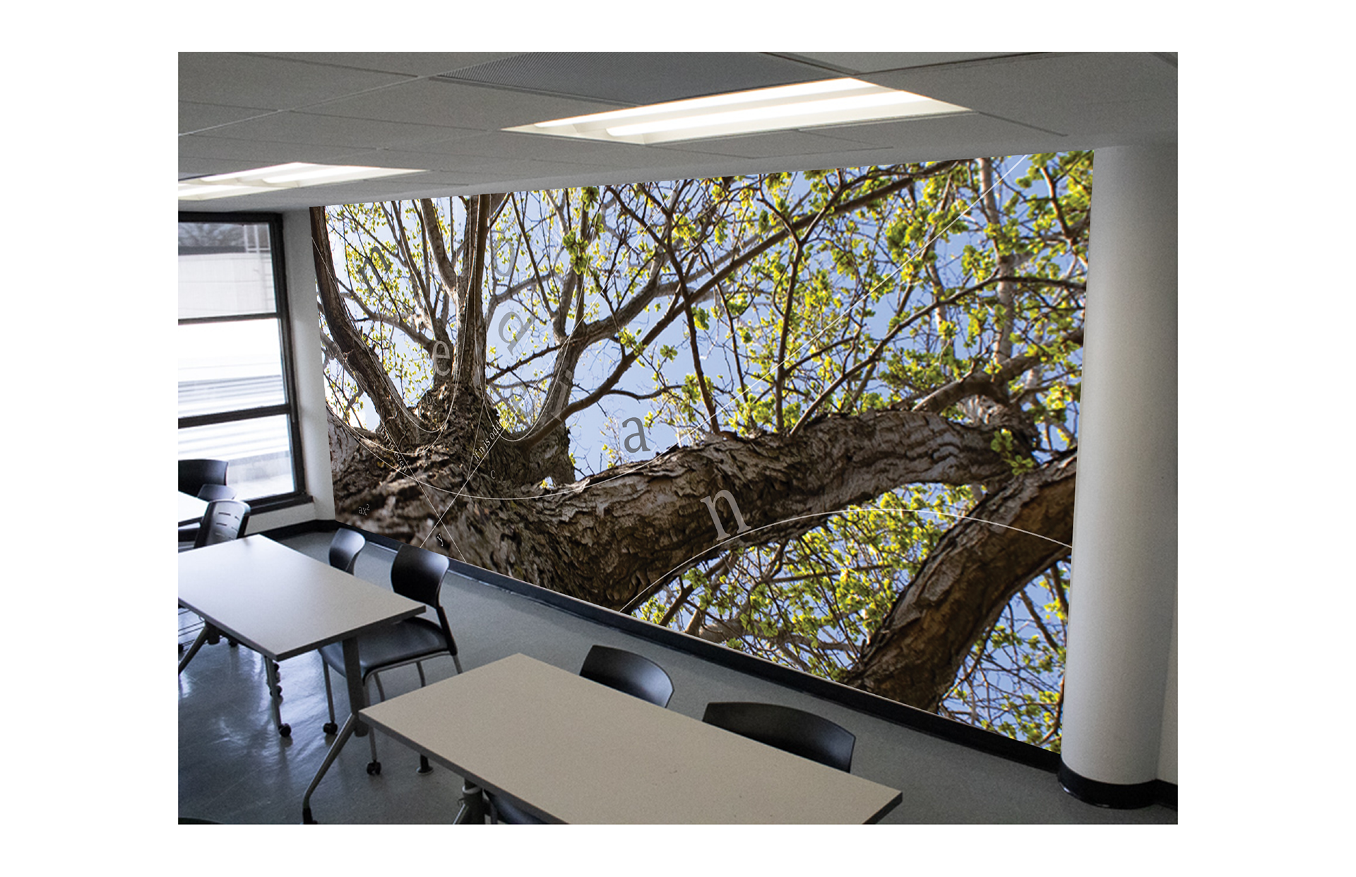 This wall graphic was designed for the math wing at Joliet Junior College. It uses parabolas, quadratics, and statistics with calming colors to create a meditative space. These pieces makes math more approachable, connects visuals to real concepts, and helps students feel more comfortable in the classroom environment.